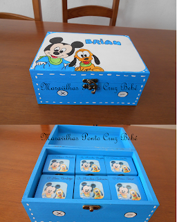 Caixa com caixinhas recordações com mickey e pluto e nome personalizado